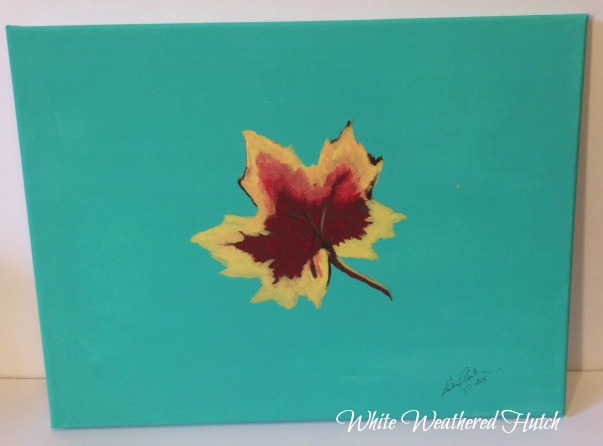 I gave it the night to dry and then the next day I traced a maple leaf onto the painted canvas.